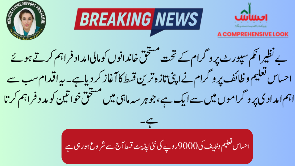 The Ehsaas Taleemi Wazaif program has commenced its latest installment, disbursing financial aid to eligible families under the Benazir Income Support Program. This initiative stands as one of the most significant aid programs, offering support to deserving women every quarter.